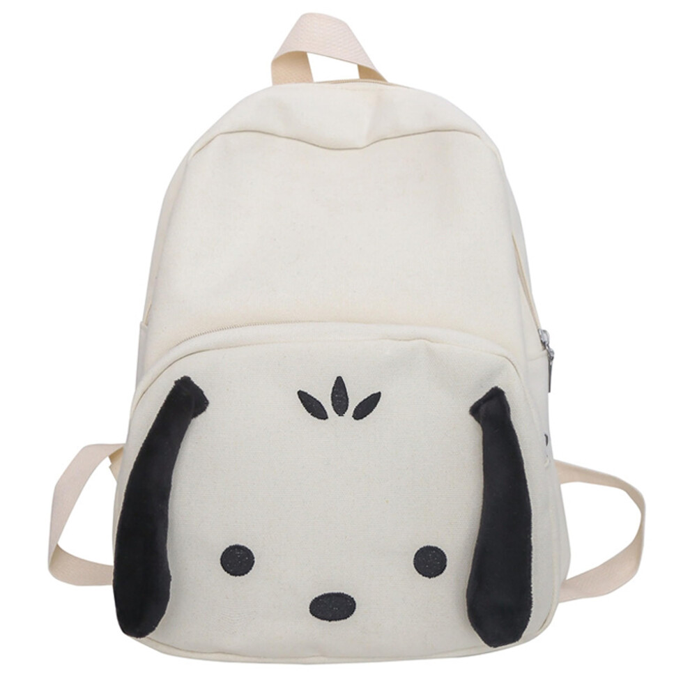 Cartoon Pochacco Embroidery Print Casual Backpack Laptop Backpack Travel Hiking Rucksack White