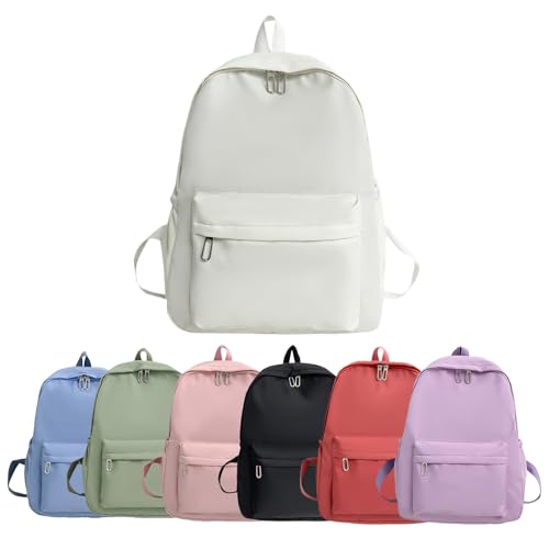 JiaYouLC Unisex Lightweight School Bag for Girls Women Teenage Boys Men Kids Causal Travel Backpack Water Resistant Rucksack (White, Medium)