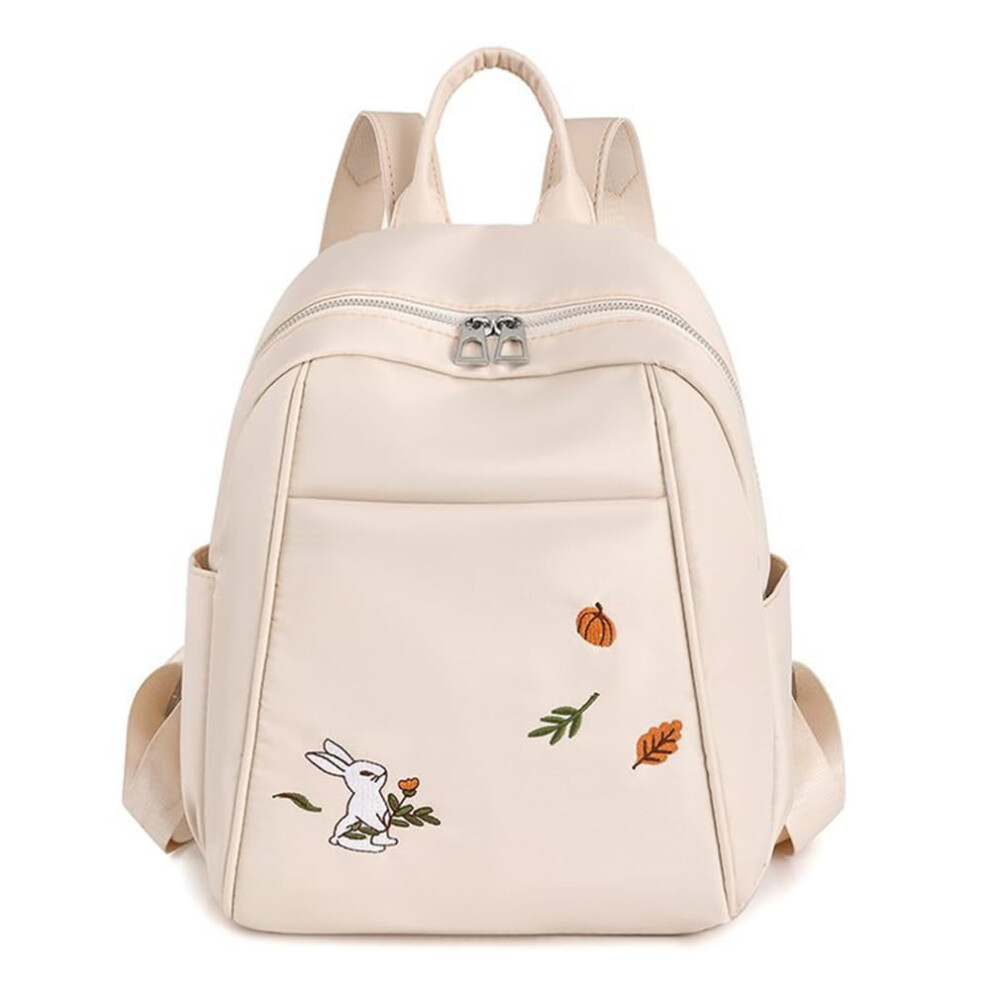 School Backpack Womens Casual Daypack With Rabbit Embroidery Lightweight Rucksack White For College School And Work