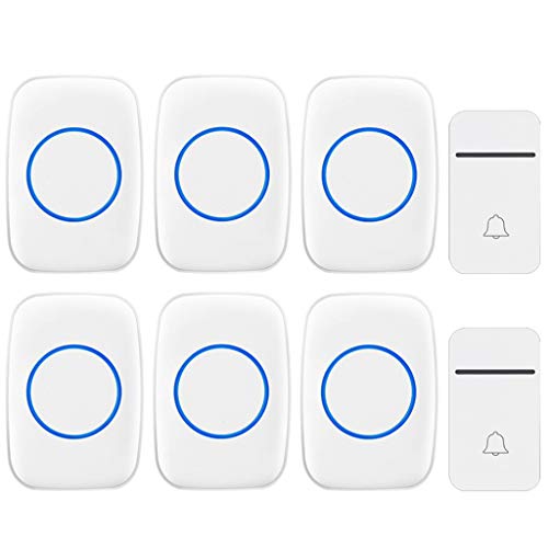 Wireless Doorbell, No Battery Required for Receiver, 38 Chimes and 3 Level Volume, 120 M Long Range Door Bells, 1 Transmitter and 6 Receivers (White)