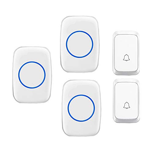 Wireless Doorbell Waterproof, 3 Transmitters 2 Receivers Wall Plug-in Cordless Doorbell 60 Ringtones 5 Volume Levels LED Blue Light Flashing Reminder 150M Transmission Distance (White)