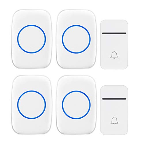Self-Powered Wireless Doorbell, IP44 Waterproof Door Chime Bell, 38 Ringtones, 3 Levels Volume, 2 Push Button Transmiters and 4 Plug-in Receivers (White)