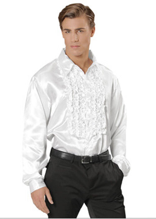 WIDMANN 01169-70s Disco Style Shirt, Adult Man, Made of Satin, With Ruffles, Carnival, Disco, Size XL, White Color