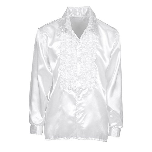 WIDMANN 01170-70s Disco Style Shirt, Adult Man, Made of Satin, With Ruffles, Carnival, Disco, Size XXL, White Color
