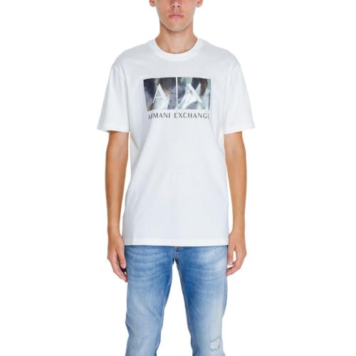 Armani Exchange Men's The Urban Expedition, Sustainable, Laser Cut Satin Logo T-Shirt, Off White, XS