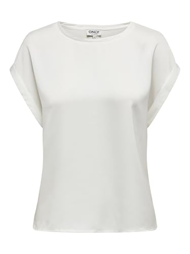 ONLY Womens Onllieke S/S Satin Mix Top WVN Noos Short-Sleeved Blouse, White, M UK