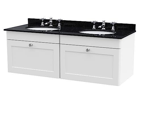 nuie CLC194BR2 Classique Wall Hung 2 Drawer Unit & 1 Tap Hole Double Marble Top with Round Basin, 1200mm, Satin White/Black