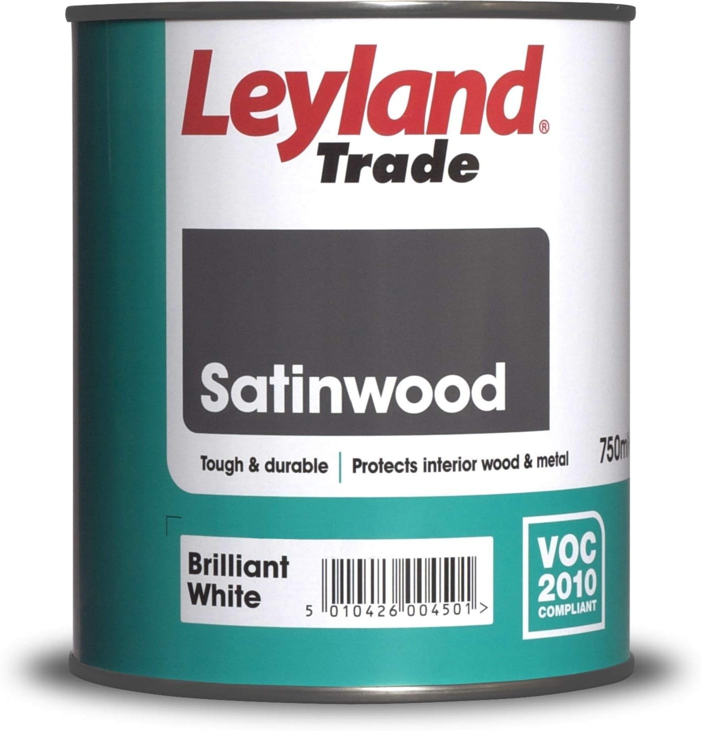 Leyland Trade Satinwood Paint for Wood & Metal Hardwearing 750ml Brilliant White