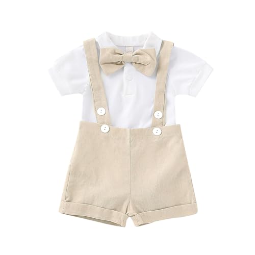 Baby Boys Formal Suit Set with Short Sleeve Romper Suspenders and Bowtie for Wedding Tuxedo Outfits Kids Tracksuit White School Polo Shirts Clothes 0-3 Months Toddler Boxers