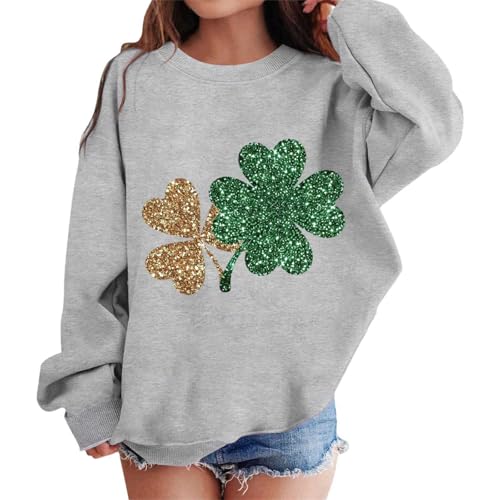 Girls St Patricks Day Graphic Print Crewneck Sweatshirt Cute Drop Shoulder Long Sleeve Pullover Top Three Year Old Boy Gifts Boys Jogging Bottoms White Tshirt School Polo Shirts