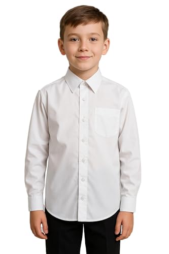 A2Z 4 Kids Boys Plain White School Uniform Shirts Long Sleeves - Boys UF Shirt White 9-10