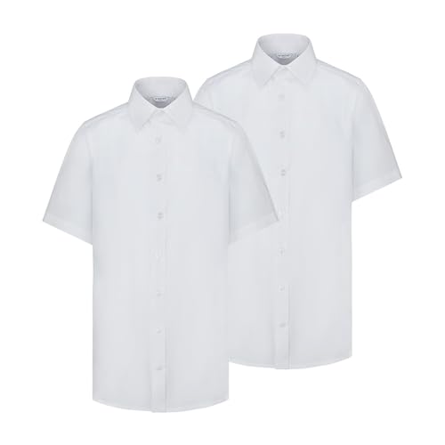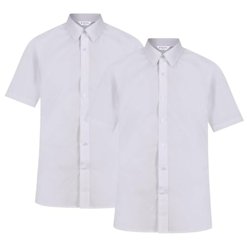 Boys Men Children School Uniform Shirt Pack of 2 Short Sleeve Regular Fit Back to School White Shirts, 2 Pack (as8, Age, 15_Years, 16_Years, Regular, White)