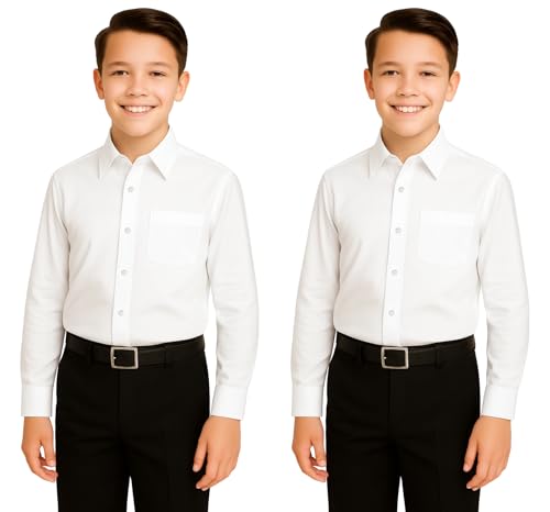 Bahob® 2 Pack Boy's School Uniform Long Sleeve Button Down White School Shirts 3-14 Years (2 Pack White, 13-14 Years)