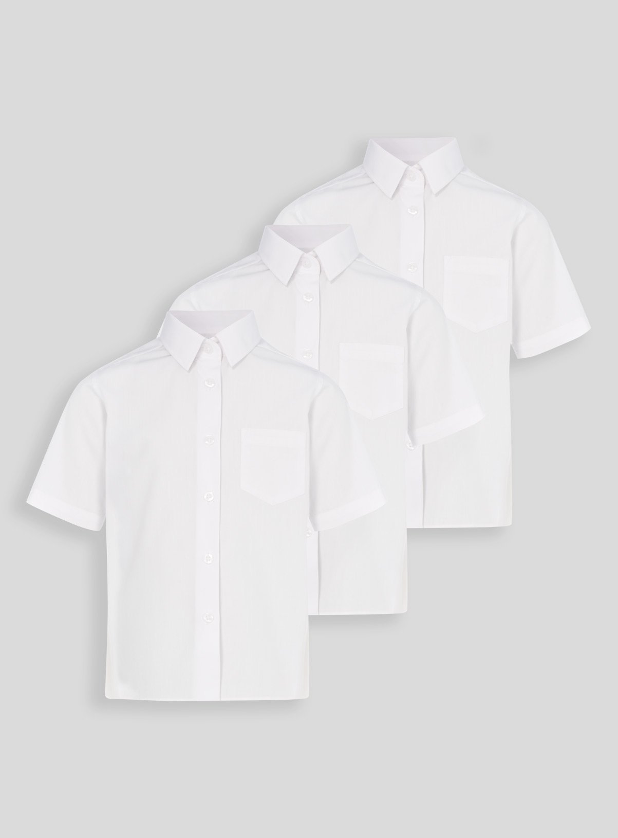Trutex Basics 2Pack Boys' White Shortsleeve School Shirts (3-16+ Years). Regular Fit, Easy Iron Button Down Shirts - Genuine School Uniform