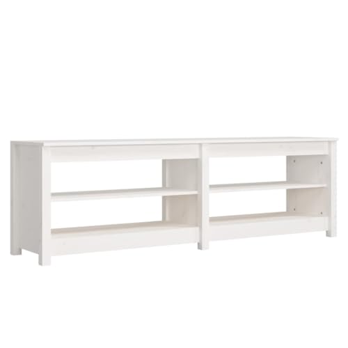vidaXL Solid Pine Wood Shoe Bench - Modern Style White Shoe Cabinet with 4 Shelves and Sturdy Top for Sitting and Decoration, 160x36.5x50 cm