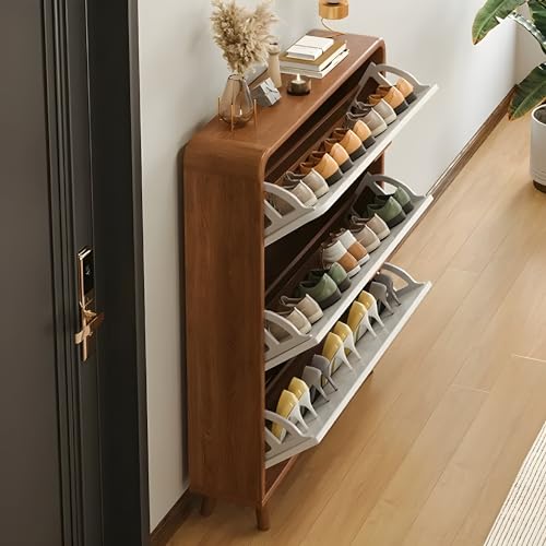 LITFAD Modern Brown & White Wood Shoe Cabinet with Front-Drop Design Free Standing Hidden Shoe Storage Cabinet Shoe Shelving for Foyer - Brown & White 31" L x 7" W x 47" H