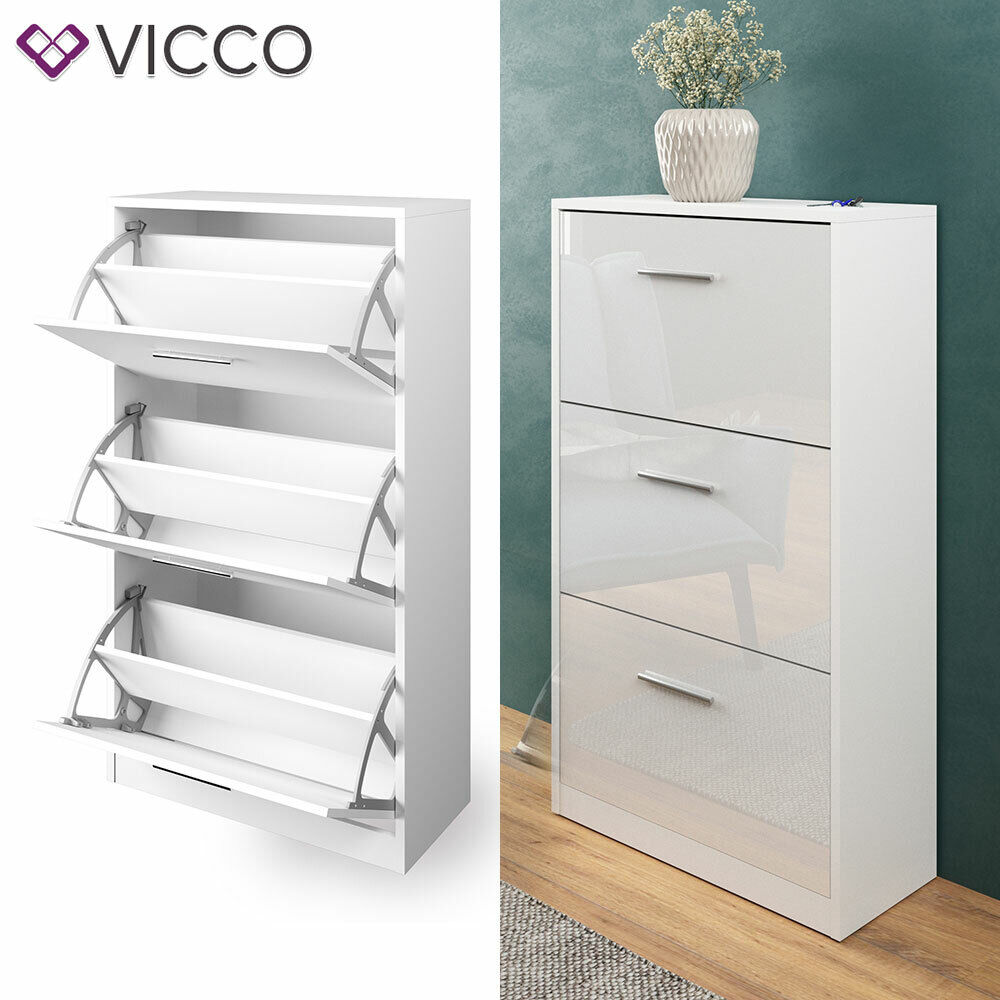 Vicco Shoe Rack Gizmo Shoes Shelving 3 Compartments storage White high gloss