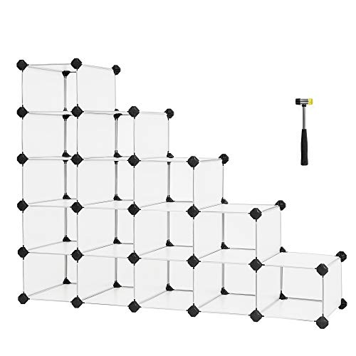 XFZJCHAP 16 Storage Unit, Shoe Rack, DIY Shelving System, Stackable Cubes, PP Plastic Shelf, Wardrobe, Closet Divider, for Bedroom, Office, White, 153 x 31 x 153 cm