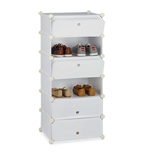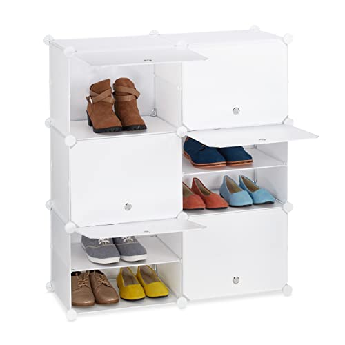 Relaxdays Plastic Shoe Cabinet, Modular Shelving System with 6 Compartments and Doors, DIY, HWD 52 x 37 x 9 cm, White