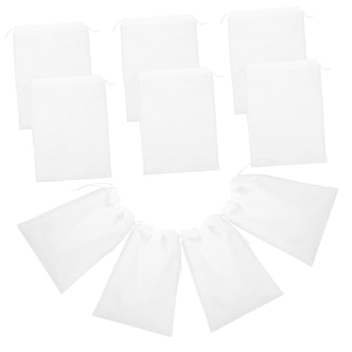 NOLITOY 10pcs White Large Drawstring Shoe Storage Bags Non-Woven Dustproof Travel Underwear Organizer Pouch 35x25cm Breathable Multipurpose Storage for Shoes Socks and Toys