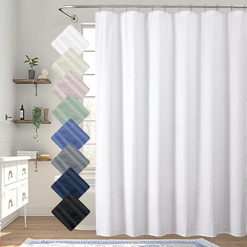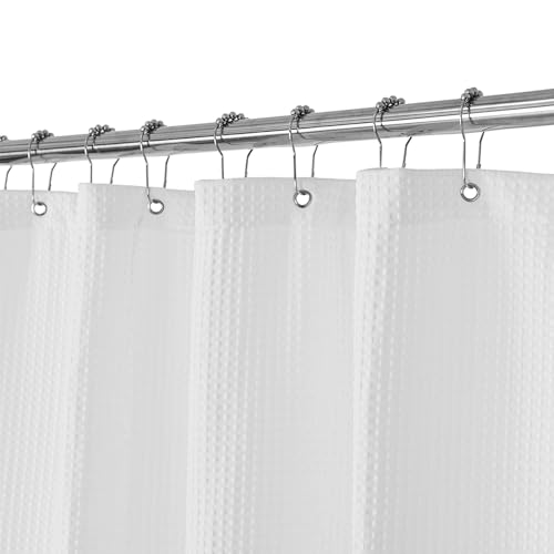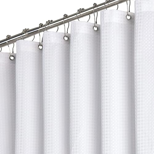 Gibelle White Shower Curtain, Waffle Weave Textured Fabric Shower Curtain for Bathroom - Soft Cloth & Hotel Spa Luxury, Water Repellent, Machine Washable, 72X72, White