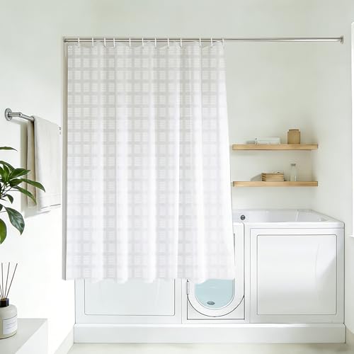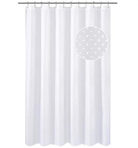 YISURE White Jacquard Shower Curtain for Bathroom Tub, Waterproof Fabric with Plastic Hooks, 71" W x 59" L /180x150cm