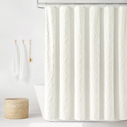 Lush Decor Jacquard Wave Shower Curtain, Single, 72" W x 72" L, Soft White - Tufted Texture Design - White Shower Curtain for Bathroom - Cottage & Coastal Bathroom Décor