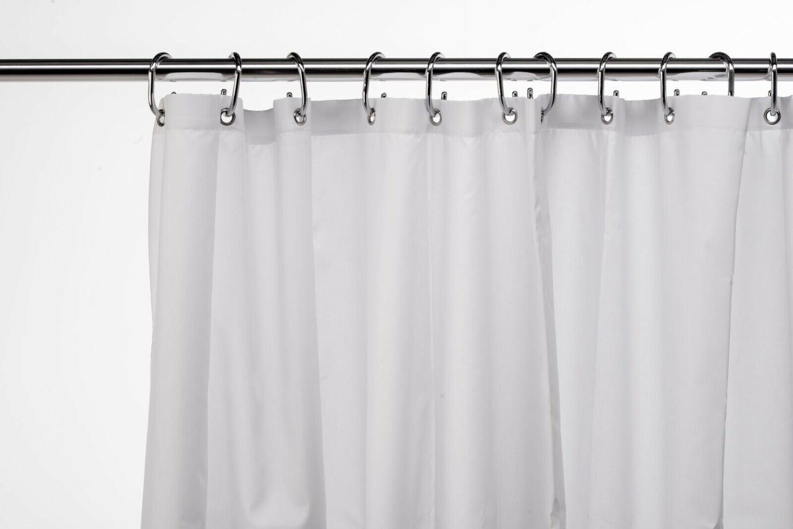 2 UR DOOR Extra Long White Polyester Fabric Shower Curtain - Mould and Mildew Resistant - Waterproof, Easy to Clean, Durable for Bathroom Décor - Solid White, 180x220 cm