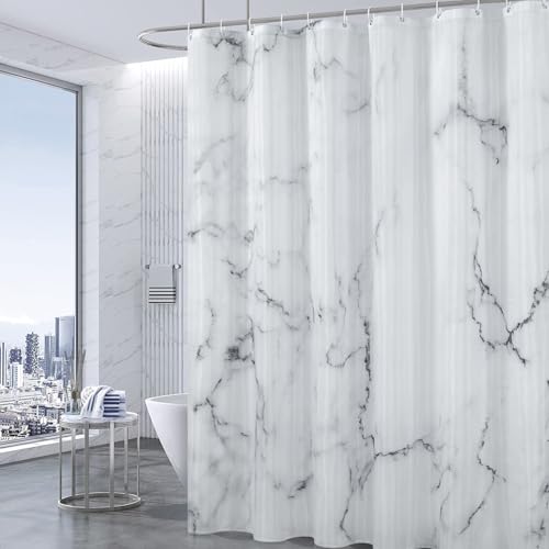 BLESFOREVER Grey White Marble Shower Curtain Set with 12 Hooks, Abstract Modern Luxury Gray White Marble Shower Curtains for Bathroom, Waterproof Fabric, 72" W X 72" L