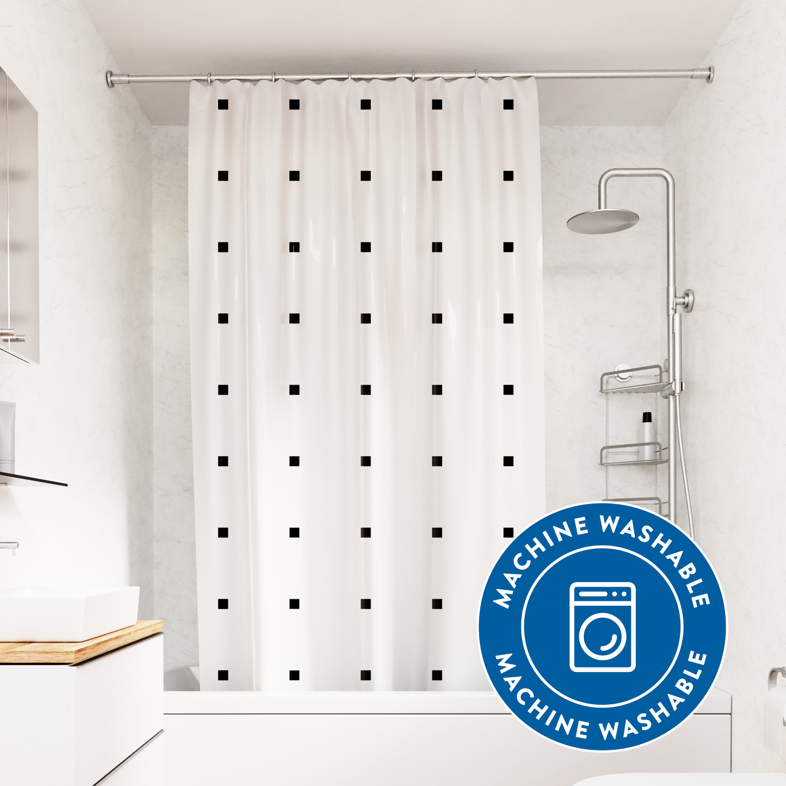 Croydex White Shower Curtain Black Dots, Machine Washable, 180x180cm