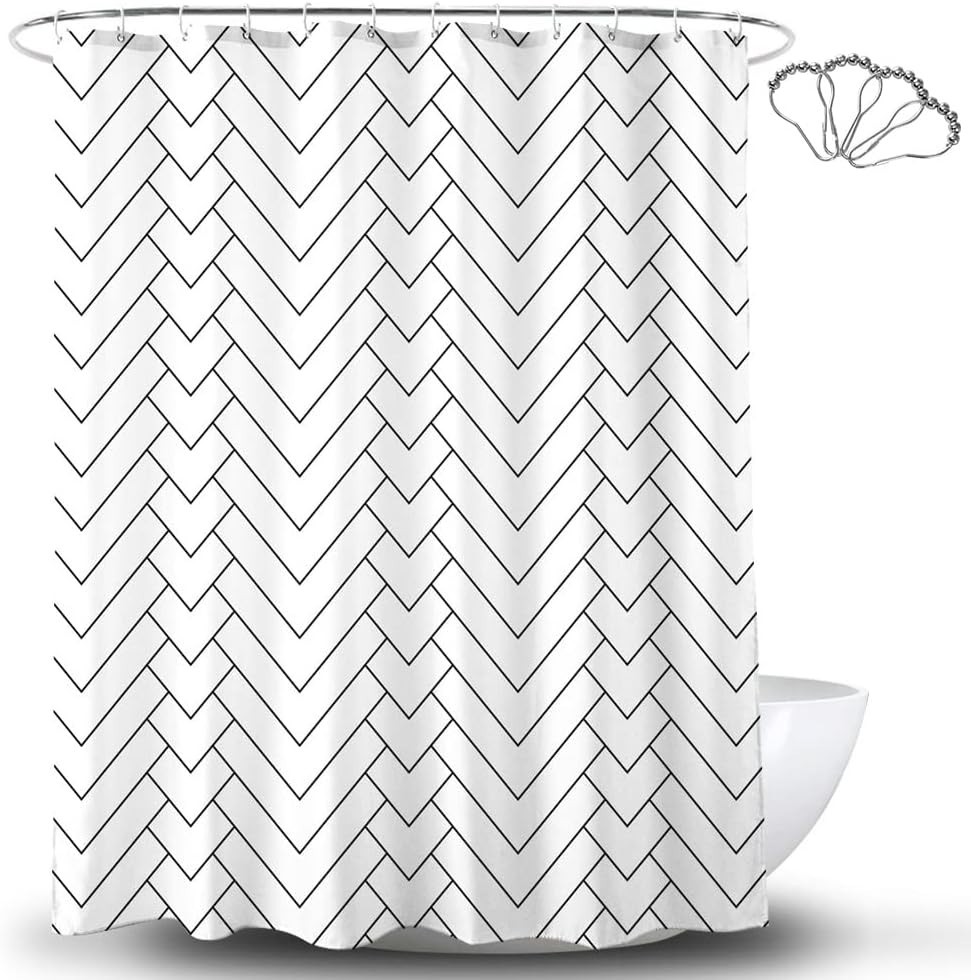 Dekelaifu Black and White Shower Curtain Cloth Fabric Geometric Chevron Design w