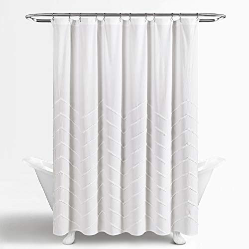 Lush Decor White Chenille Chevron Shower Curtain for Bathroom (72" x 72")