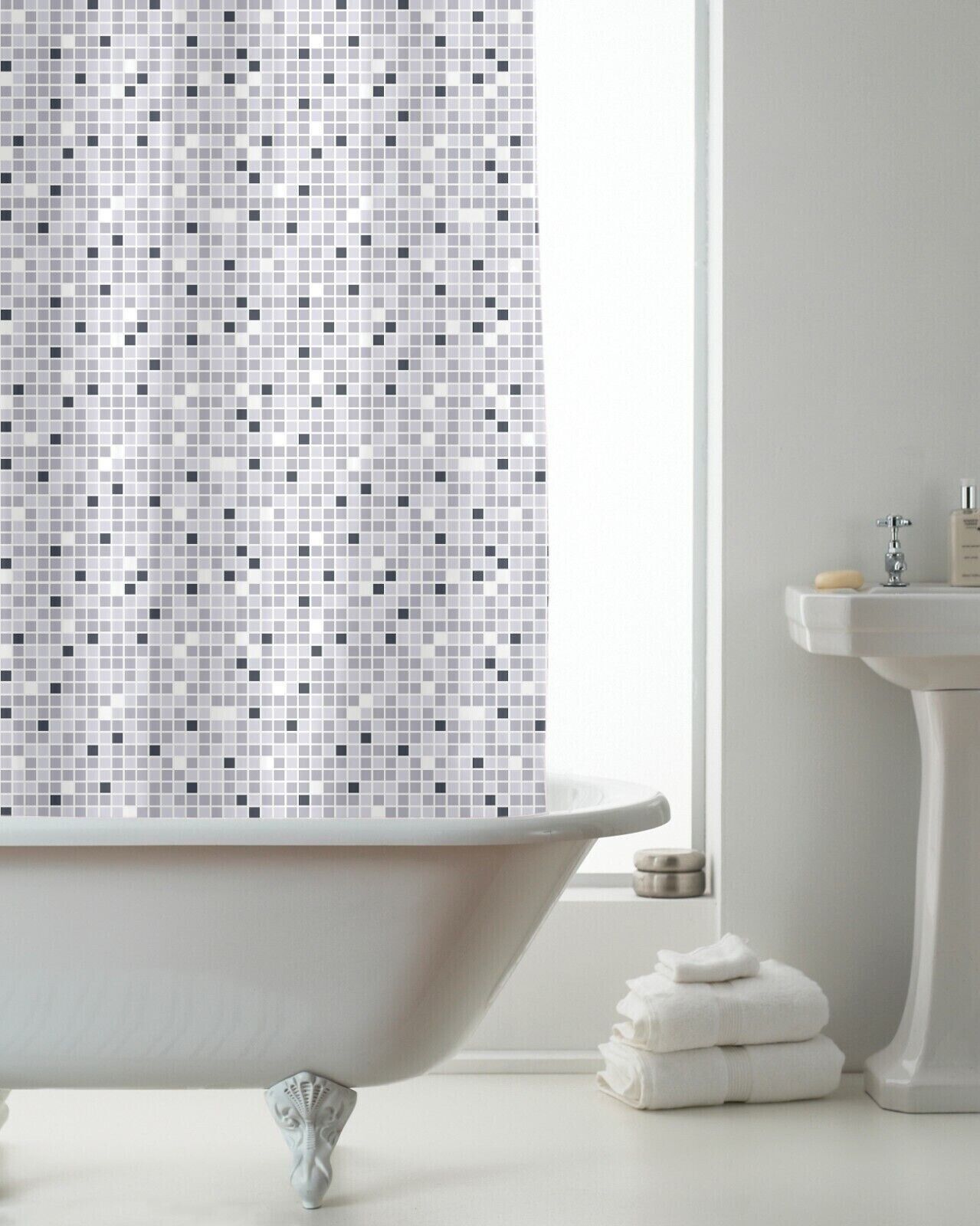 Peva Shower Curtain Mosaic Black & White Waterproof Shower Curtain With Hooks