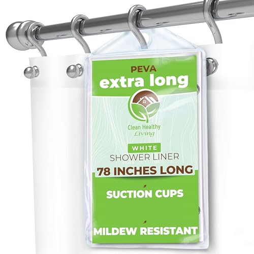 Clean Healthy Living XL Heavy Duty PEVA White Shower Curtain Liner with Suction Cups - 70 X 78 in. Long