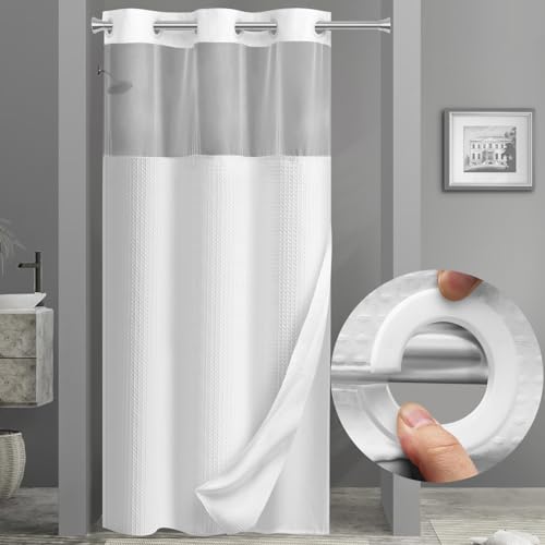YellyHommy Stall No Hook Shower Curtain with Snap in Fabric Liner Set Less Time White Waffle Shower Curtain for Bathroom 75" L x 36" W