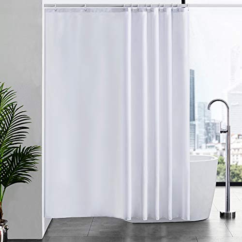 UFRIDAY 72x75 inch White Fabric Shower Curtain for Bathroom,Water Repellency and Machine Washable - 72 by 75 Inches, White