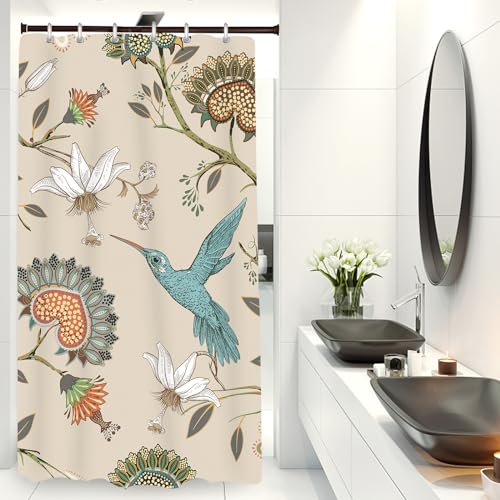 LIVETTY Off White Bird Floral Shower Curtain 90×180cm with 12 Hooks Mould Proof Flowers Shower Curtain Fabric Bathroom Curtain Washable Quick-Drying