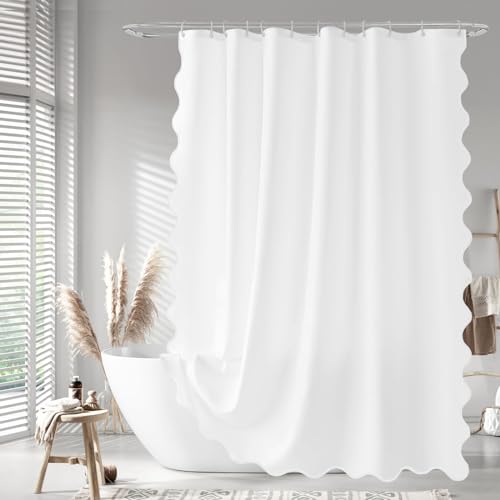 Seasonwood White Scalloped Fabric Shower Curtain 72 x 72 Inches, Aesthetic Shower Curtain Cute Pretty Shower Curtains