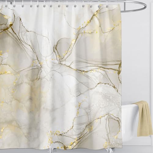 LIVETTY White Marble Shower Curtain 180x180cm Drop Abstract Shower Curtains with 12 Hooks Fabric Bath Curtain Washable Quick-Drying