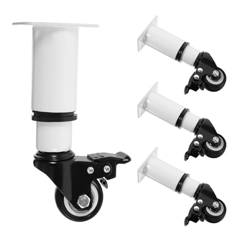 VALICLUD 4Pcs Adjustable Metal Furniture Legs with Swivel Wheels, 145-160Mm White Cabinet, Sofa, Bed and Coffee Table Support Legs for Home and Office