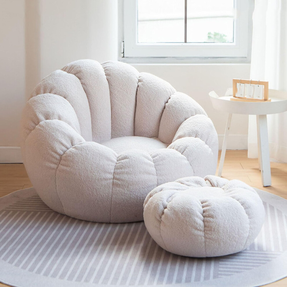 Bean Bag Chair Cover Ultra Soft Teddy Fabric, Sunflower Shaped, White, For Sofa Bed And Arm Chair, Without Filler