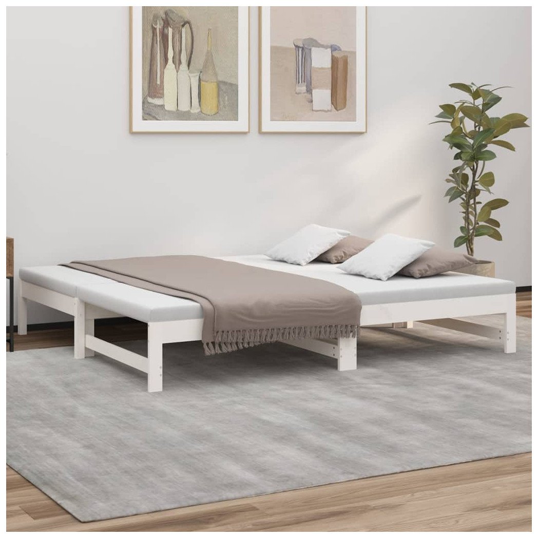 Daybed Solid Pinewood White Pull-Out Sofa Bed 195.5x148x30 cm Twin Slatted 2x75