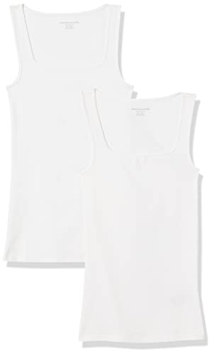 Amazon Essentials Women's Slim-Fit Square Neck Tank Top, Pack of 2, White, M