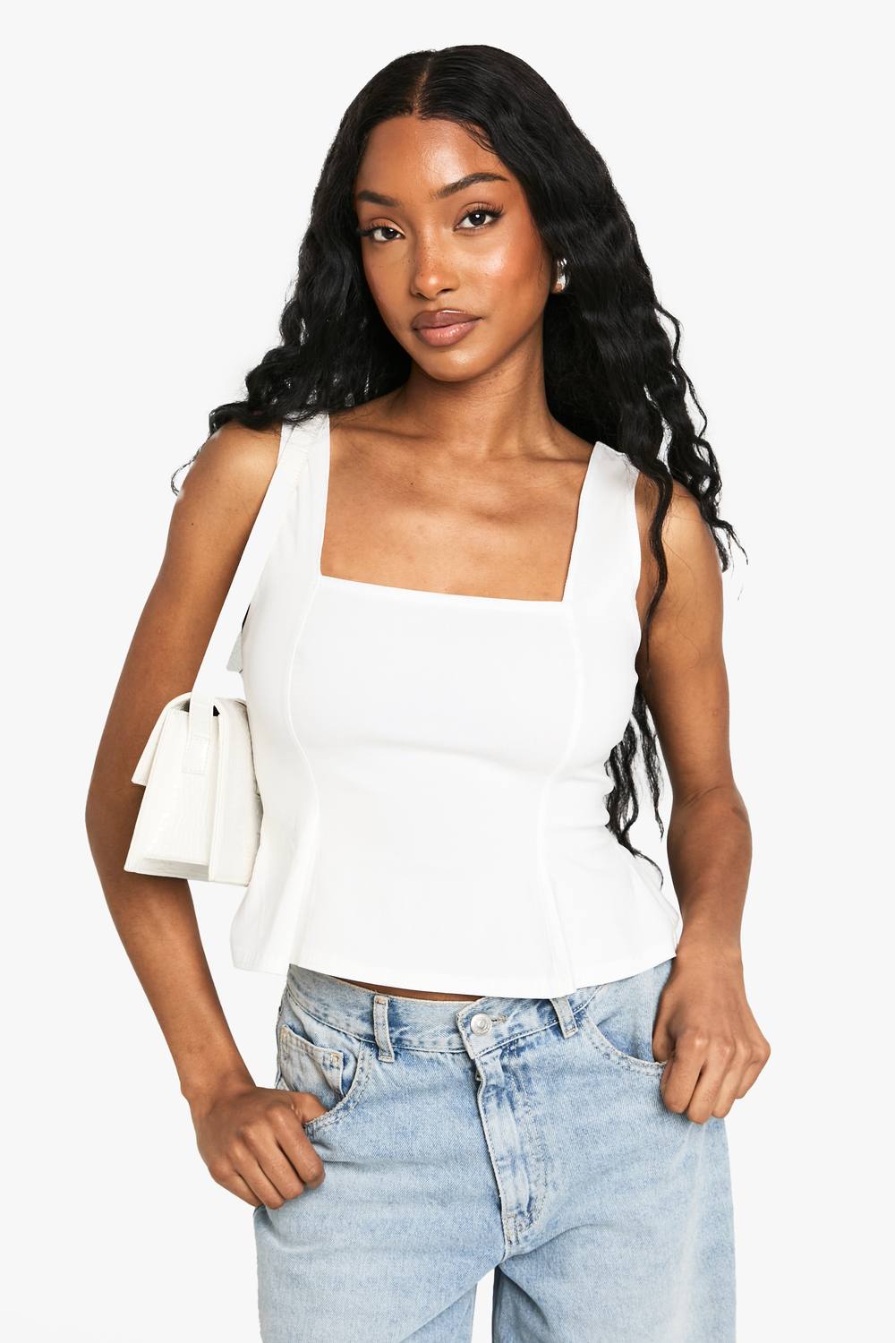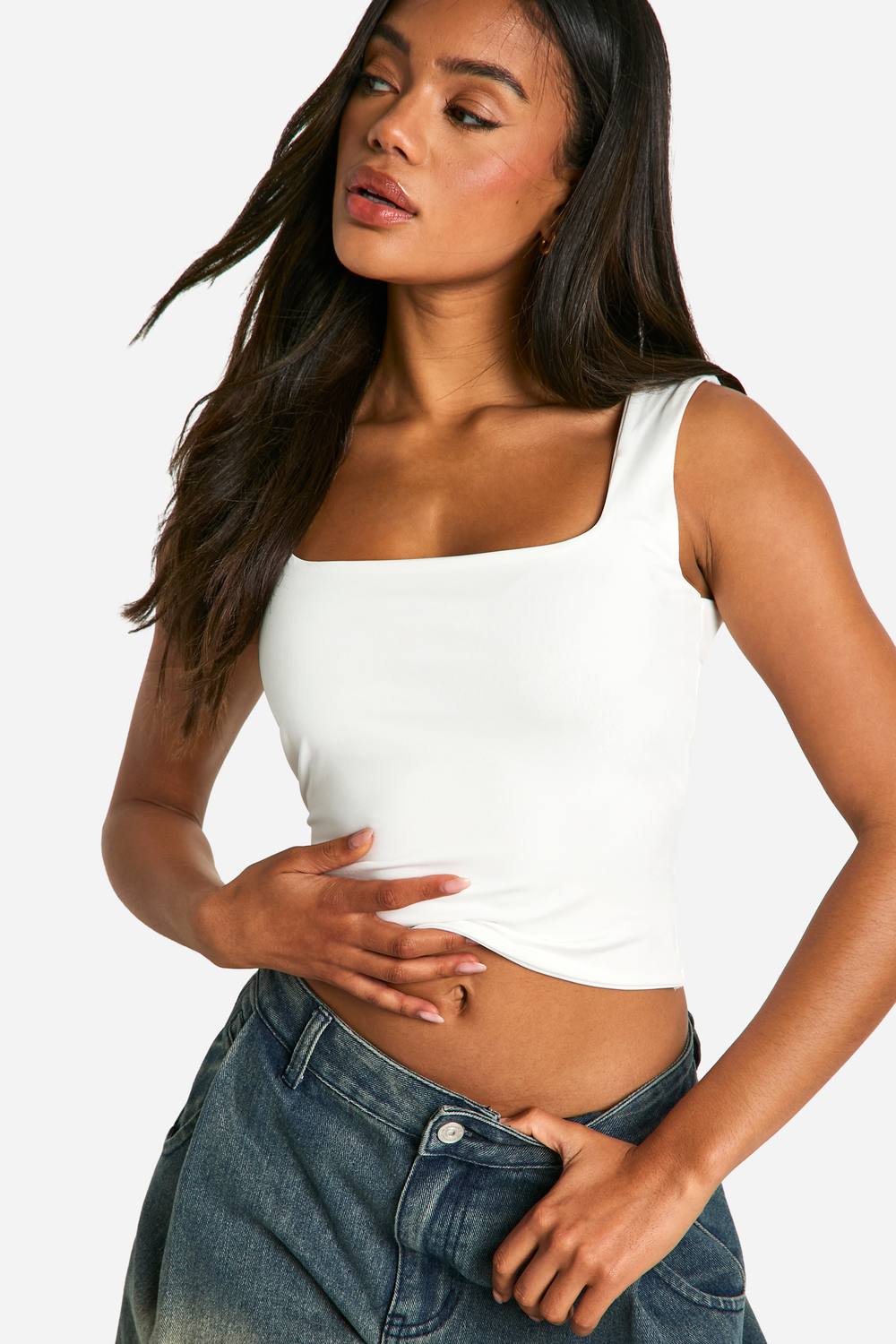 Shape White Slinky Square Neck Crop Top