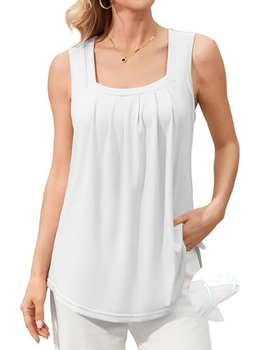 Flikity Plus Size Tops for Women, Square Neck Top Short Sleeve Ladies Tops Casual Work Office Blouses Womens T Shirts Pleated Front Oversized Summer Top White 2XL