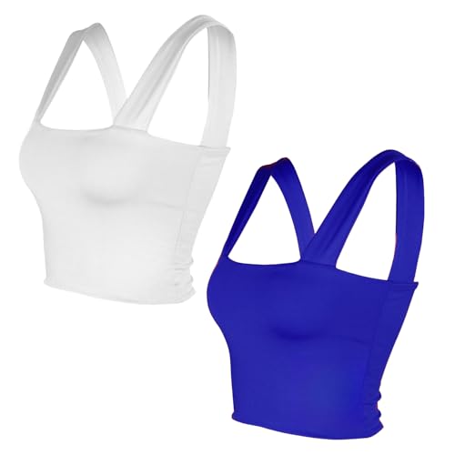 Womens 2 Pack Vest Sleeveless Strappy Crop Tank Top Square Neck Double Layer Fitness Casual Basic Tops XS White Royal Blue