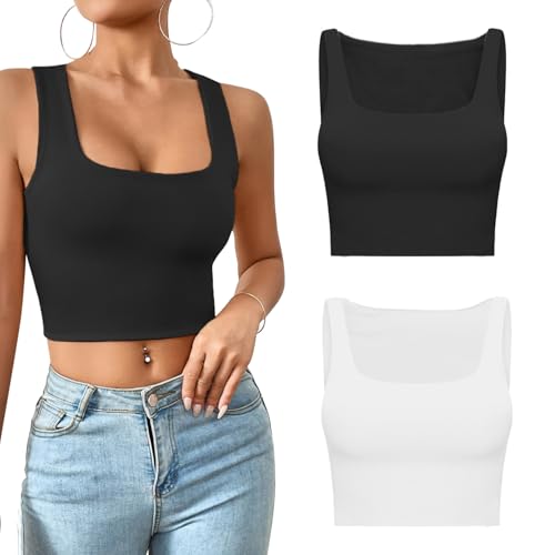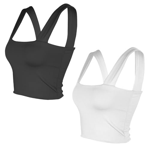 Vest Tops for Women White Black 2-Pieces Crop Top for Women Girls Sexy Square Neck Vest Sleeveless Double Lined Tank Top Lightweight Comfortable S Size