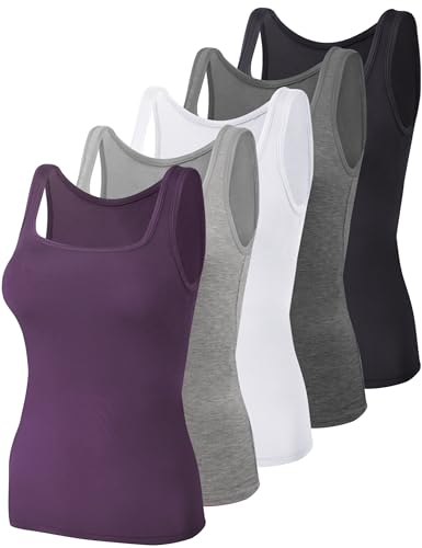 BQTQ 5 Pack Women's Tank Tops Square Neck Sleeveless Ladies Tank Top Undershirts, Black, White, Gray,Medium Orchid, Dark Gray, L