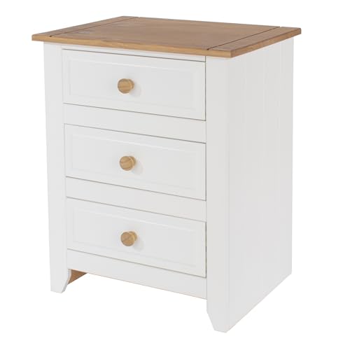 3 Drawer Bedside Cabinet with Pine Top and Wooden Handles White Painted MDF Storage Unit