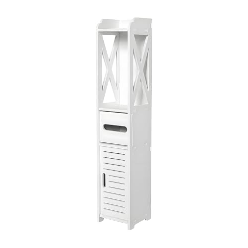 sanjianke-fs Bathroom Floor Cabinet,Waterproof FreeStanding White Slim Bathroom Storage Unit with Daily Use Layer and 1 Cupboard Door,Multi-purpose Cabinet for Store Toilet Paper,Shampoo,16x16x68CM